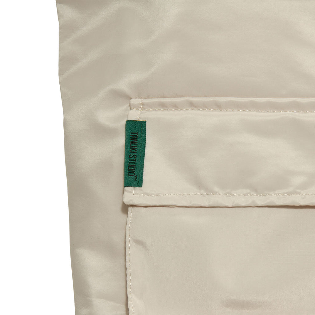 The left and right pockets are stitched with Tanuki Studio's logo and a tanuki face label.