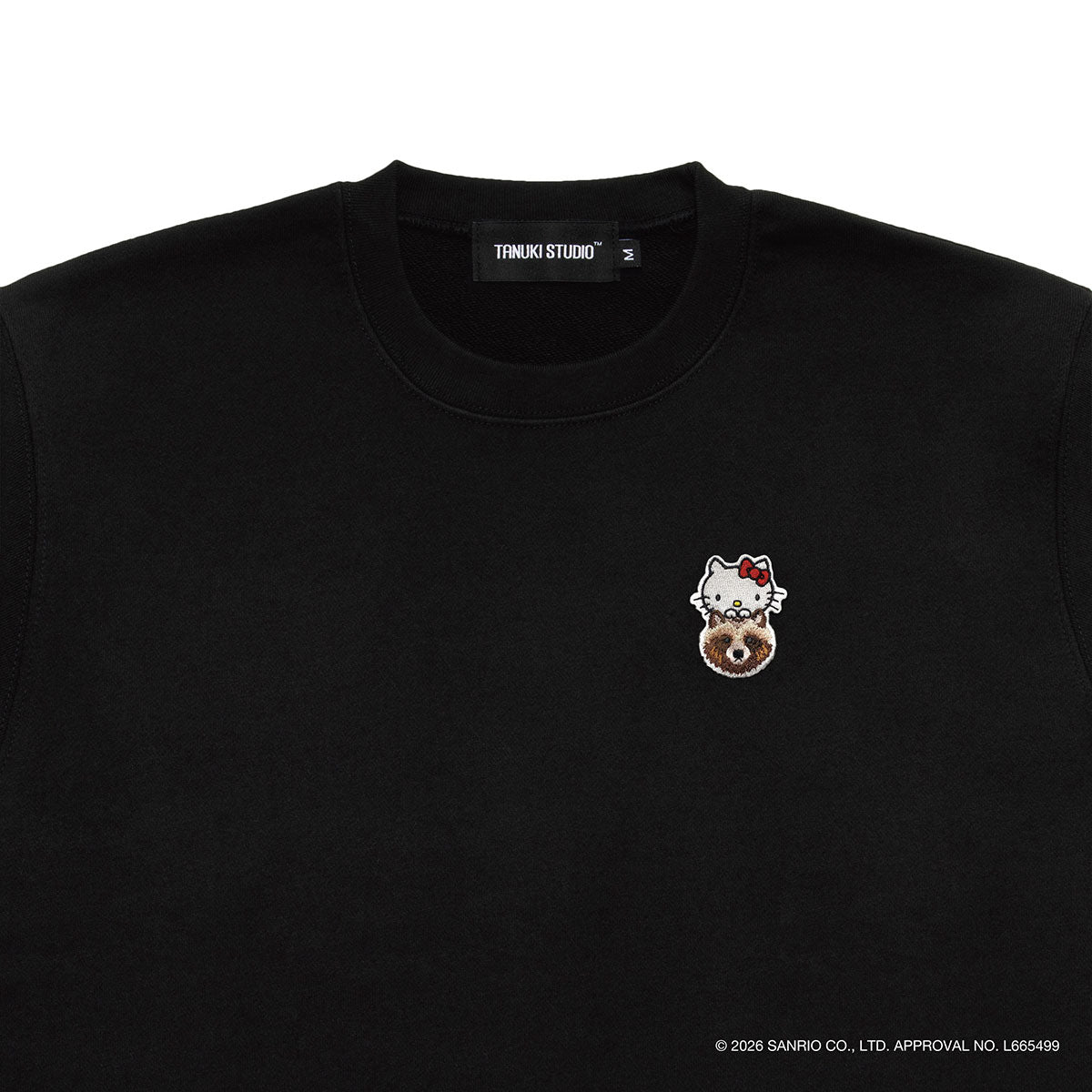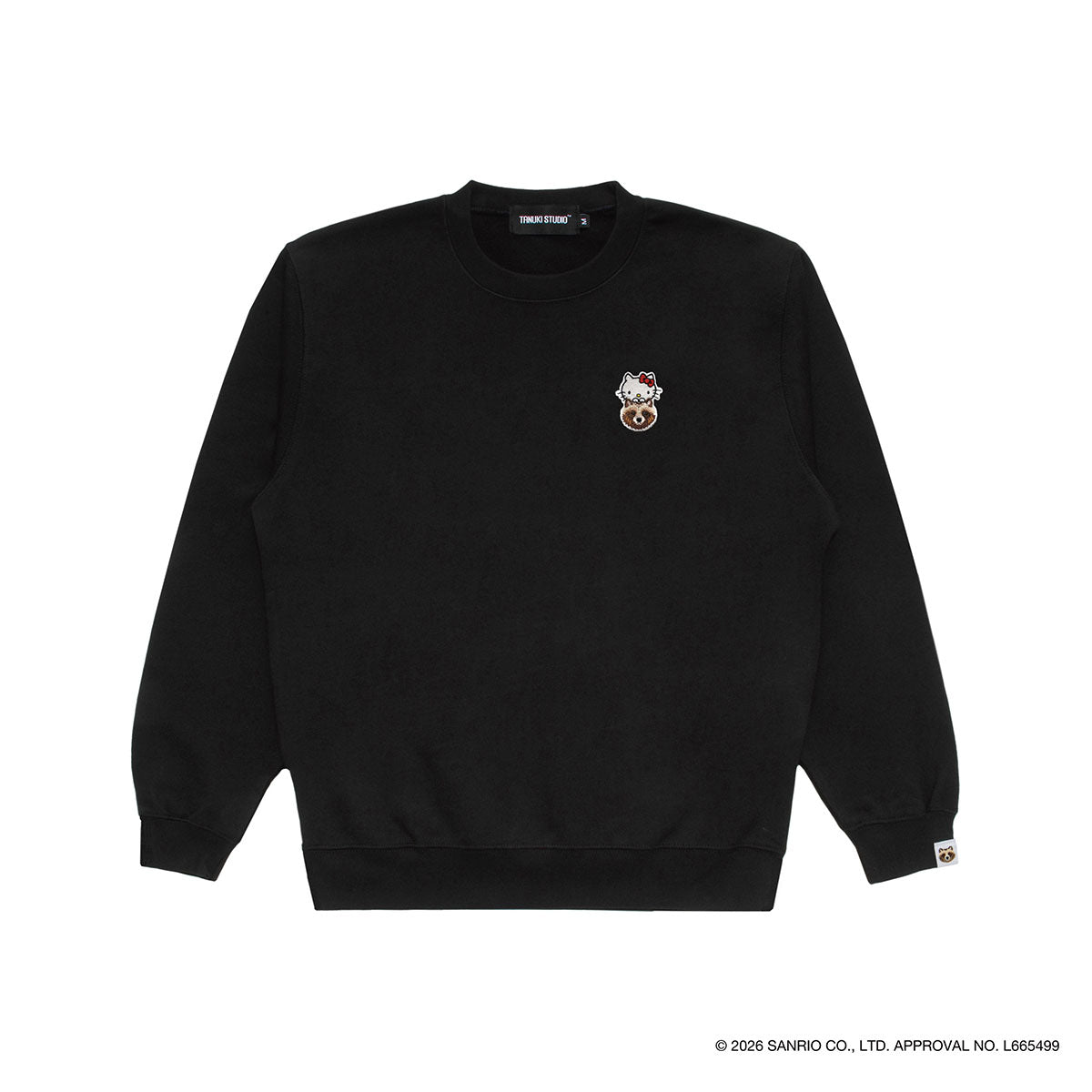 Featuring a patch design where Hello Kitty peeks out from atop a tanuki, this crewneck sweatshirt boasts a unisex fit perfect for both men and women—a signature TANUKI STUDIO design.