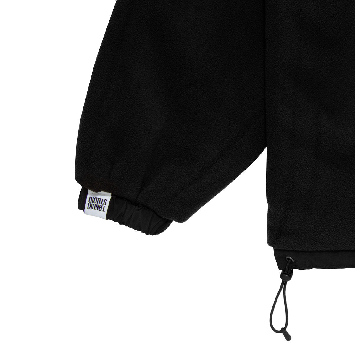 The fleece side excels at insulation, providing comfortable wear even in chilly seasons. A tanuki label is placed on the cuffs, and the hem drawcord allows for adjusting the silhouette.