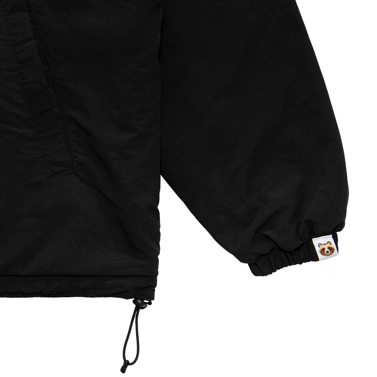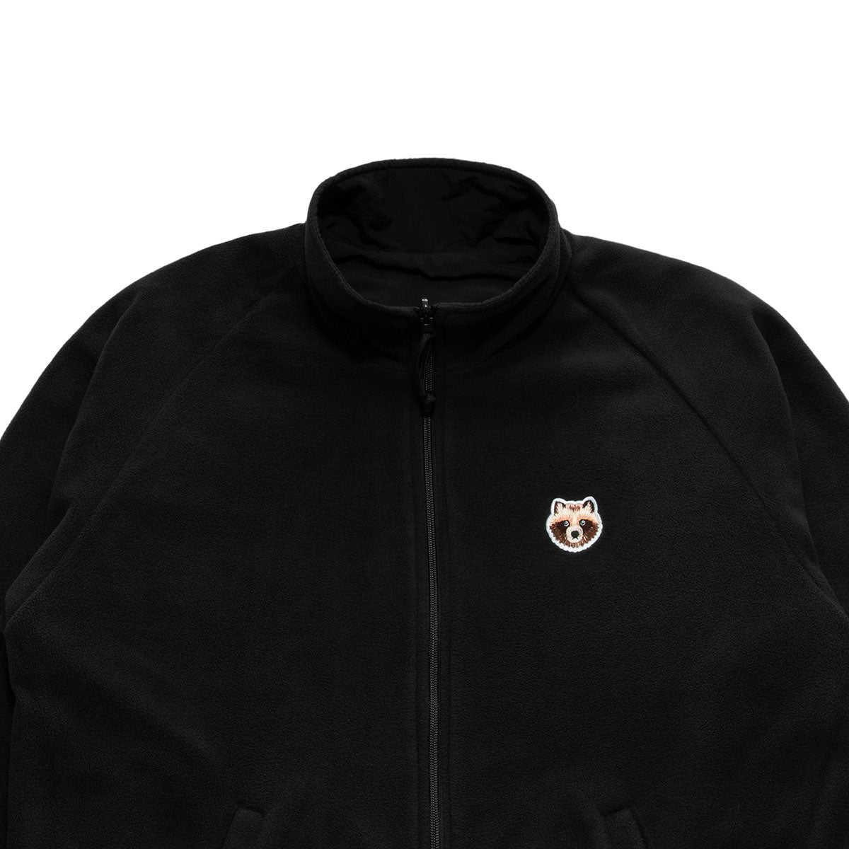 フリース面は保温性に優れ、肌寒い季節にも快適な着心地。袖口にはタヌキのピスネームを配置し、裾のドローコードでシルエットの調整も可能です。