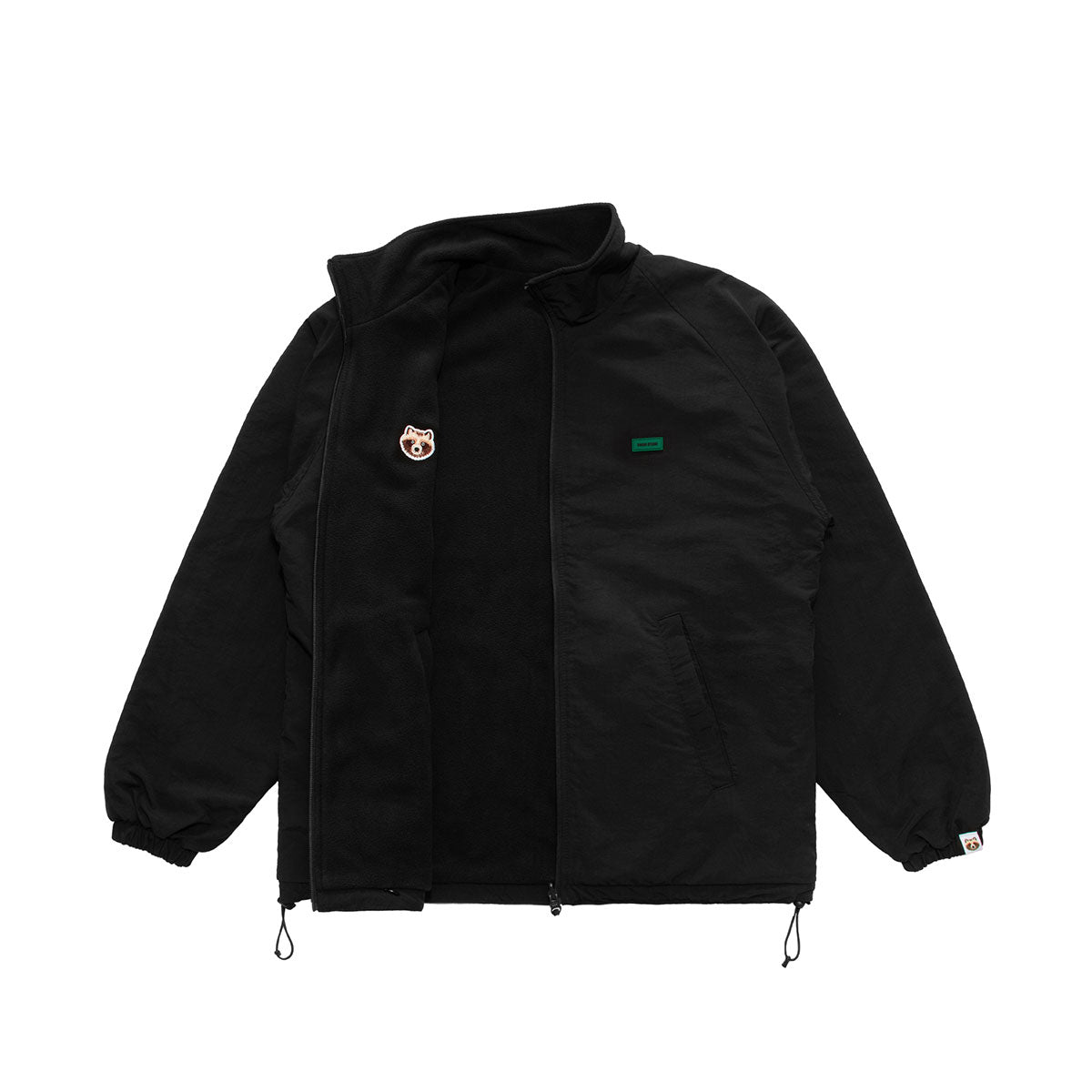 The fleece side is adorned with a tanuki patch, creating a soft and warm impression. The nylon side features a simple Mini Box logo for a sleek, refined look. Enjoy two distinct designs to suit your mood or occasion.