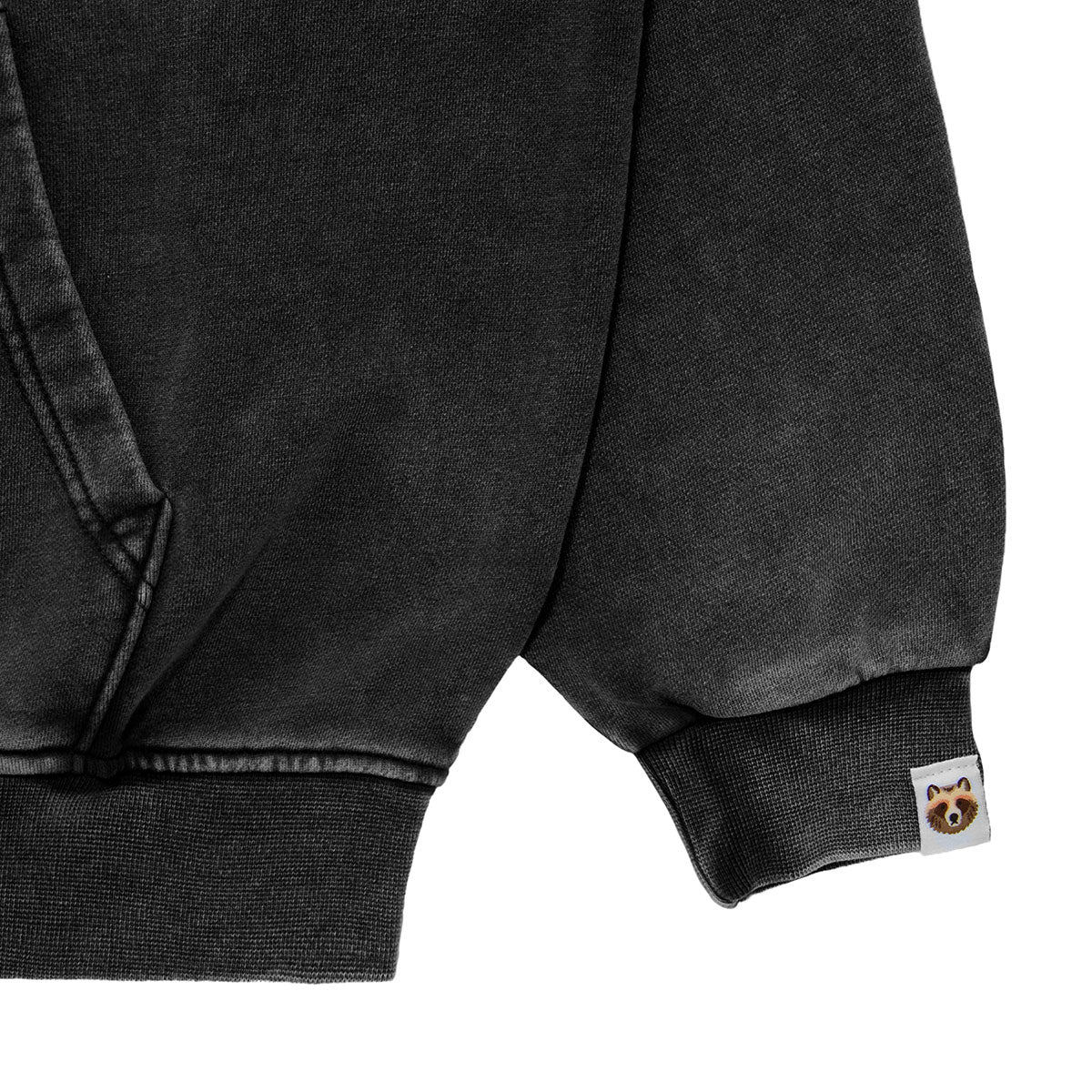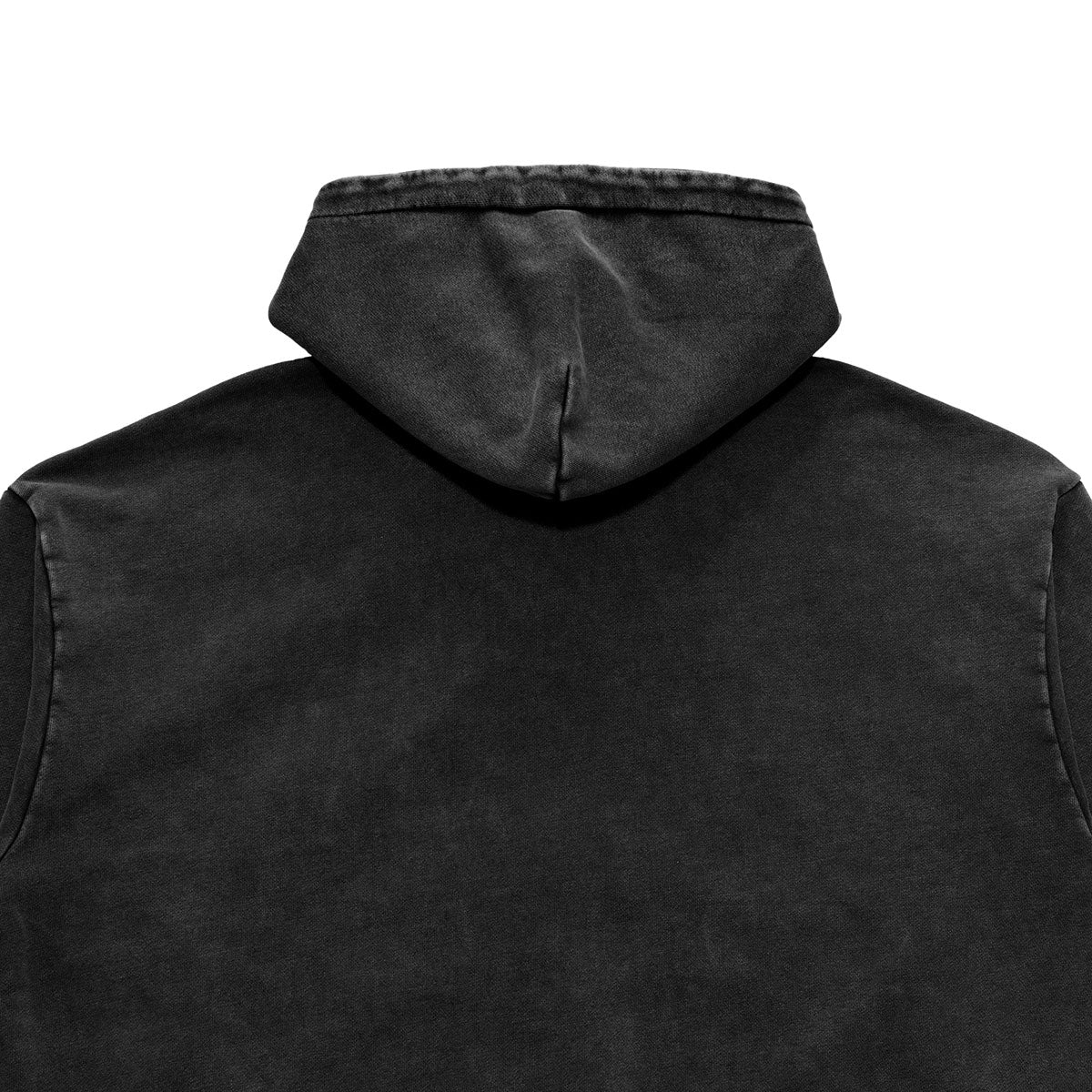 The hoodie features a wide silhouette, offering roomy width while maintaining a balanced length that avoids excessive length.
