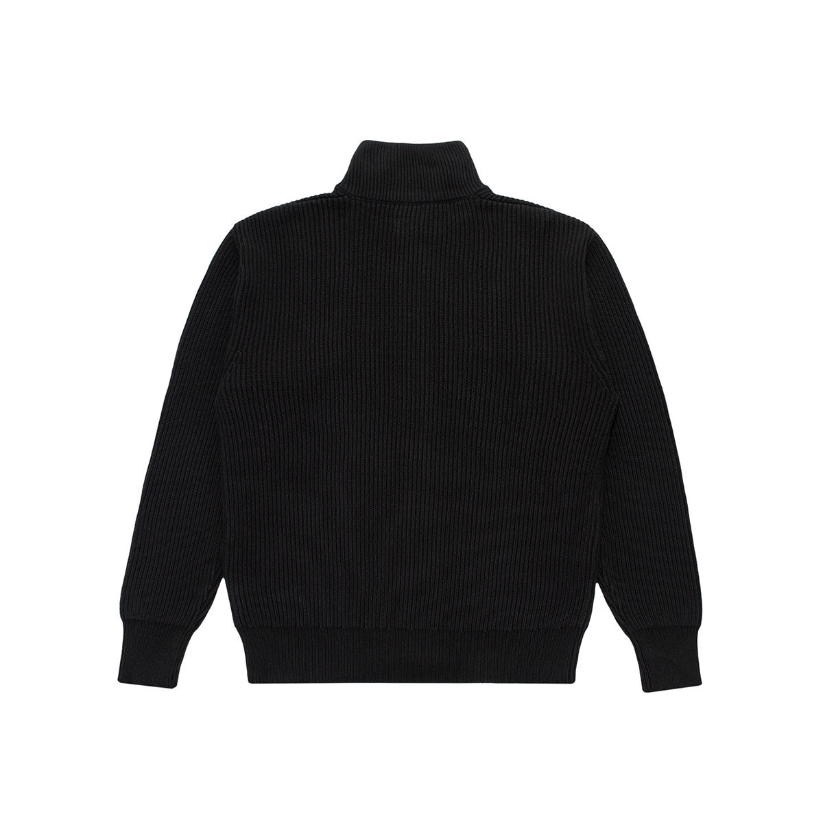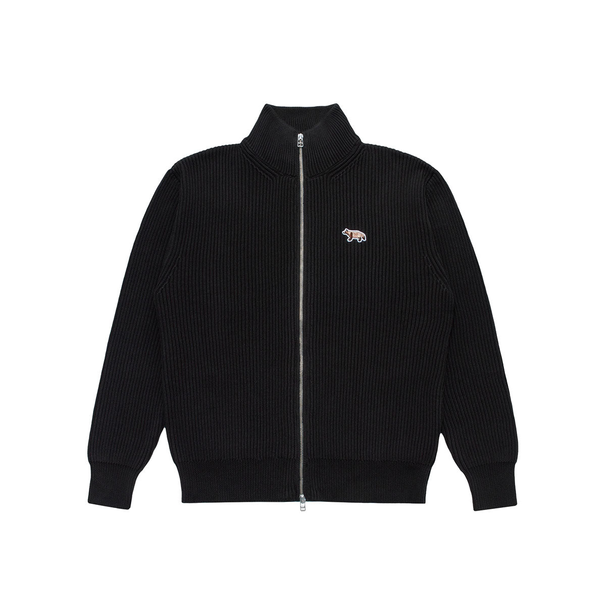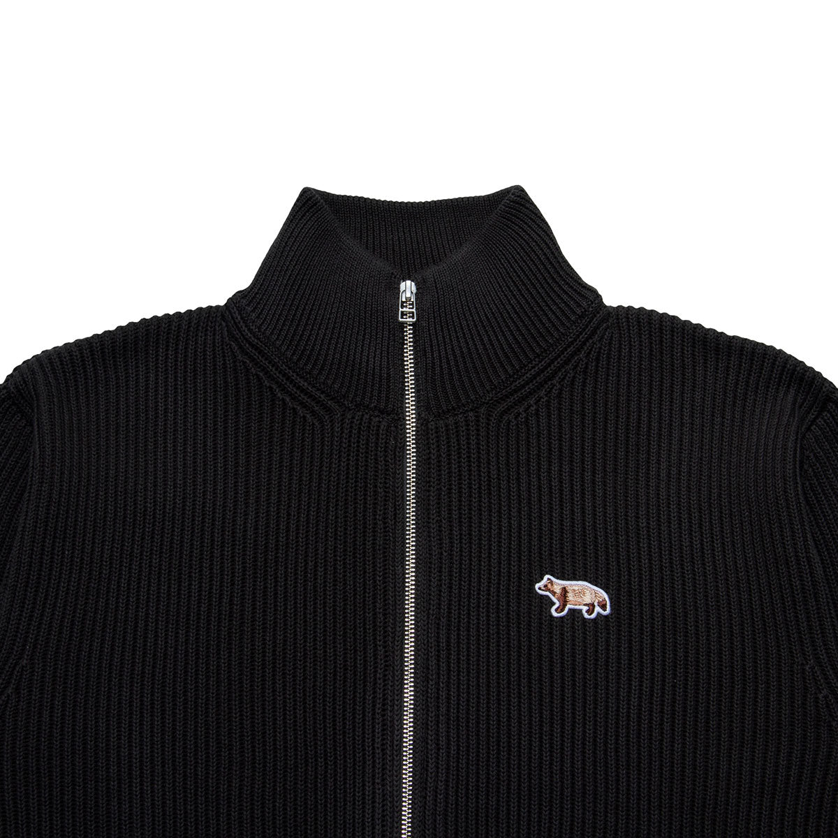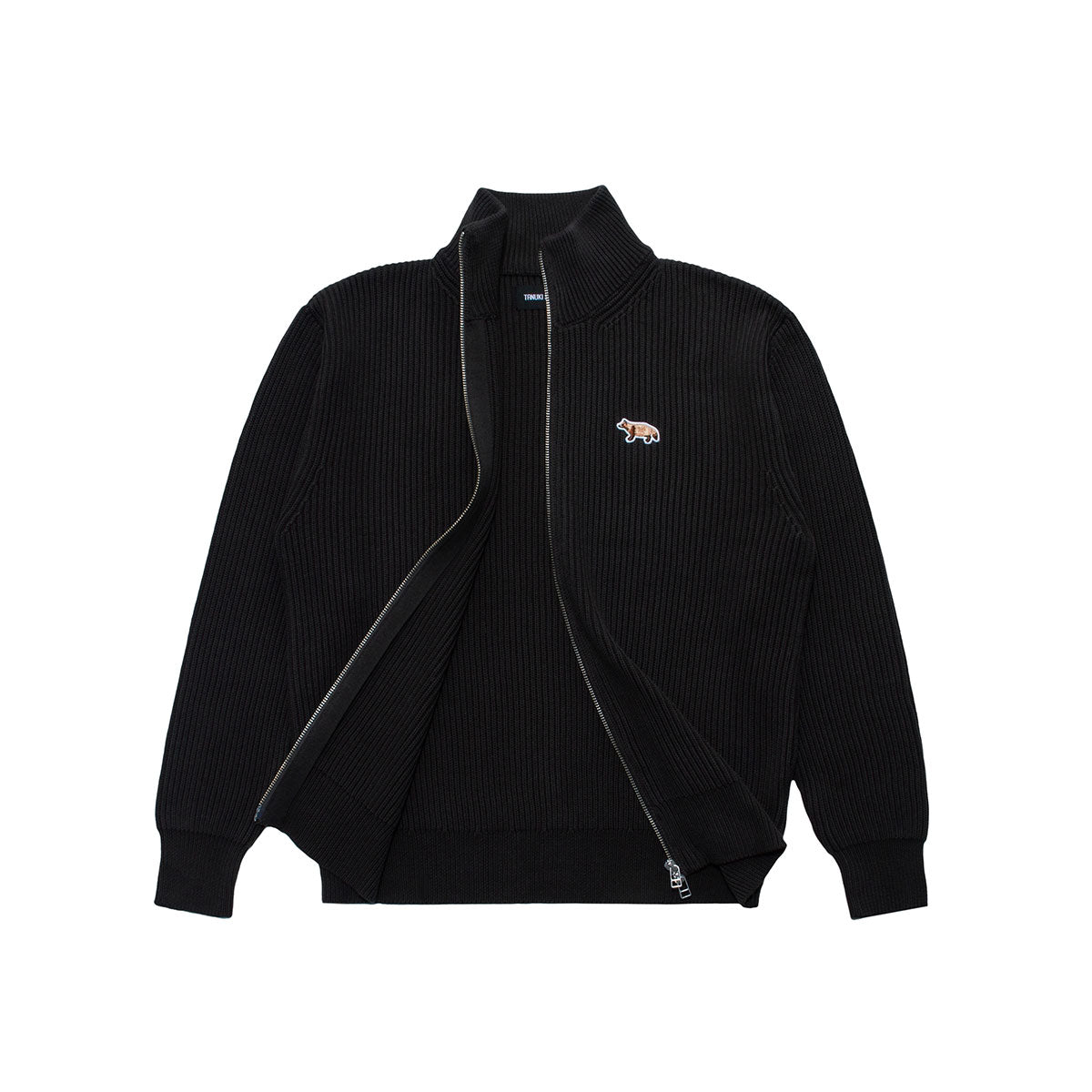 Driver's knit with double zipper, finished with a sturdy, thick knit featuring an original sideways tanuki patch.