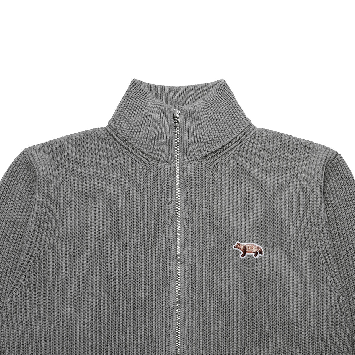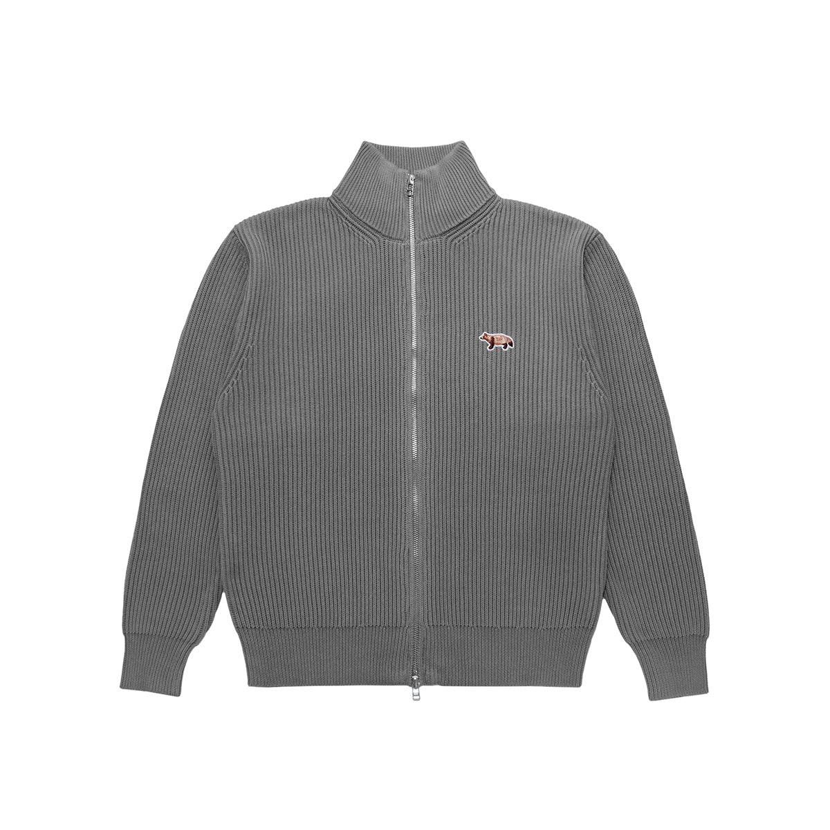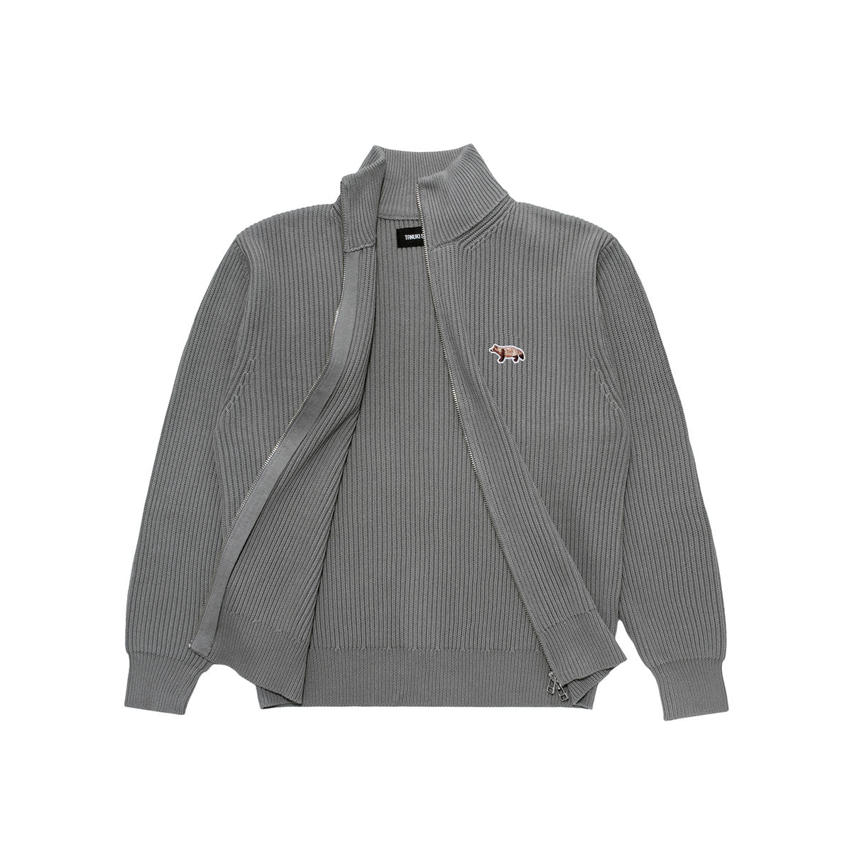 Driver's knit with double zipper, finished with a sturdy, thick knit featuring an original sideways tanuki patch.