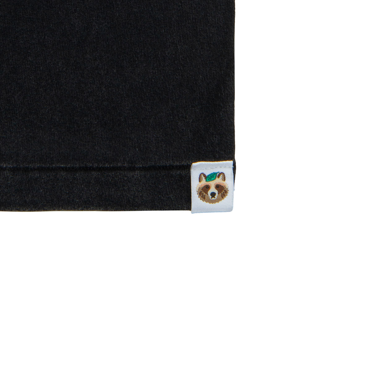 The label sewn onto the sleeve cuff was designed based on the image of a tanuki wearing a leaf on its head, disguised as a human and playing sports.