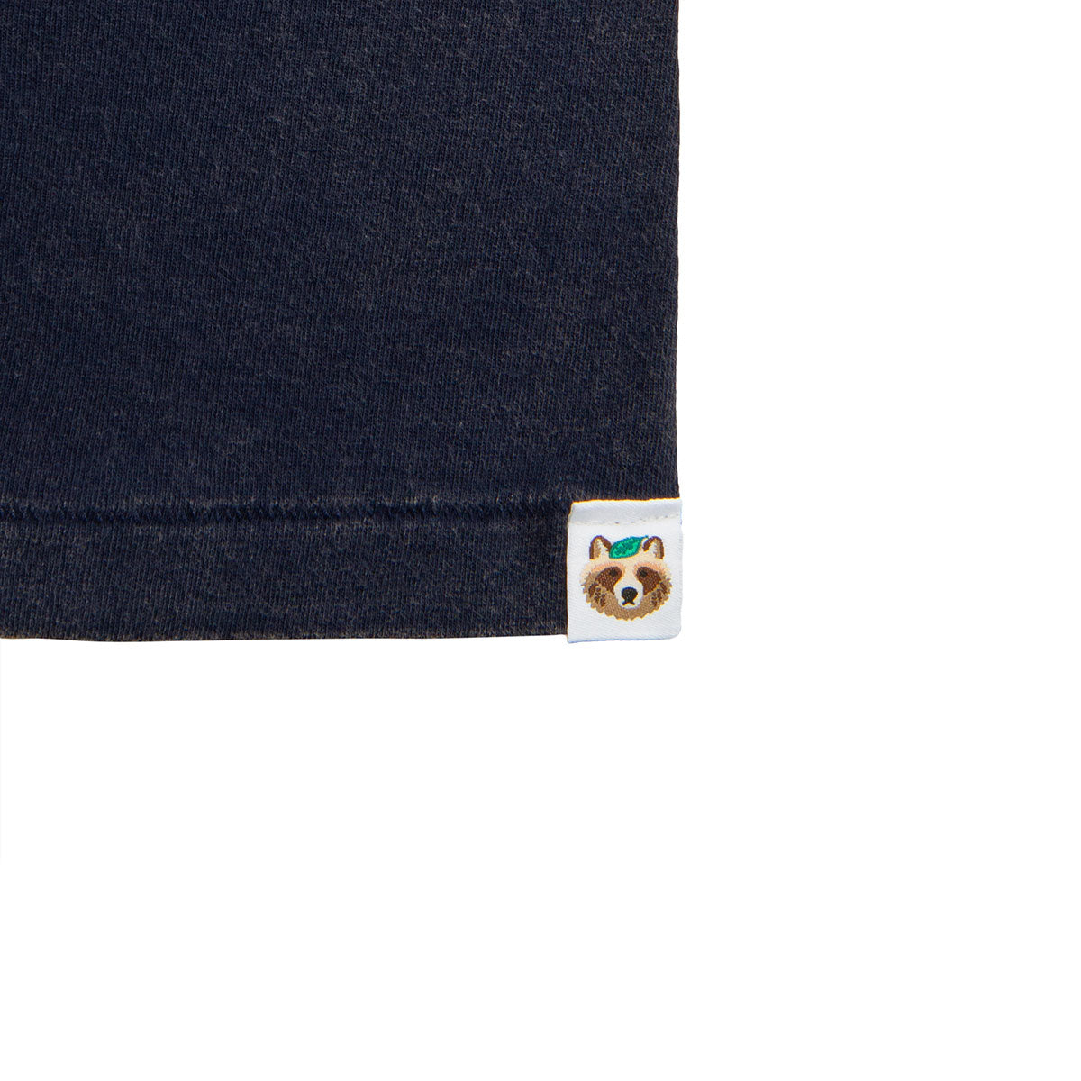 The label sewn onto the sleeve cuff was designed based on the image of a tanuki wearing a leaf on its head, disguised as a human and playing sports.