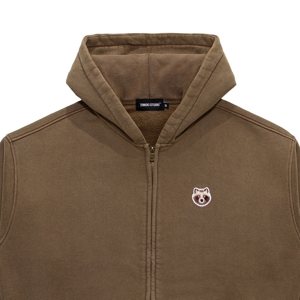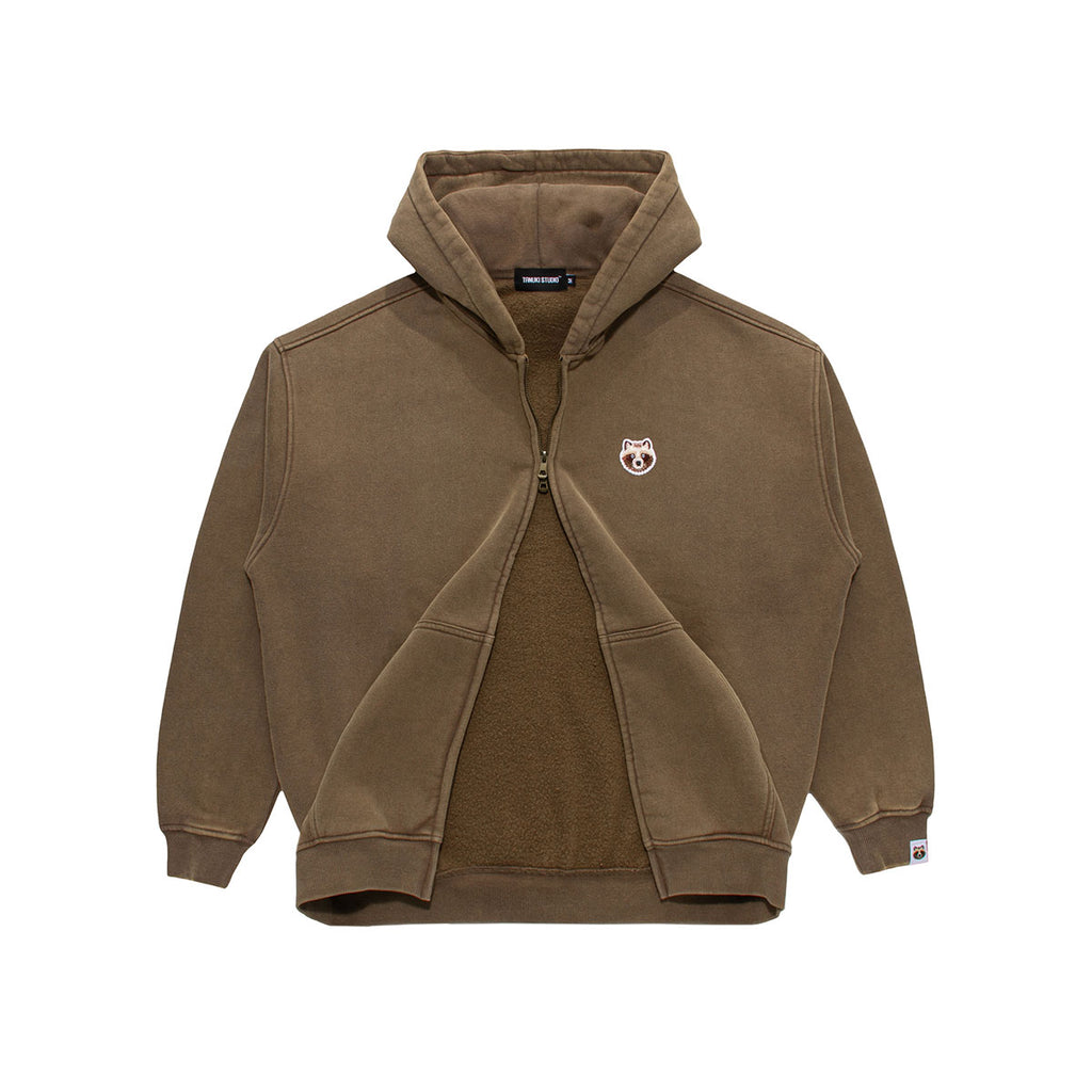裏起毛のフワッとした素材感のスウェット生地にビンテージ加工を加えたオーバーサイズのジップアップフーディーです。