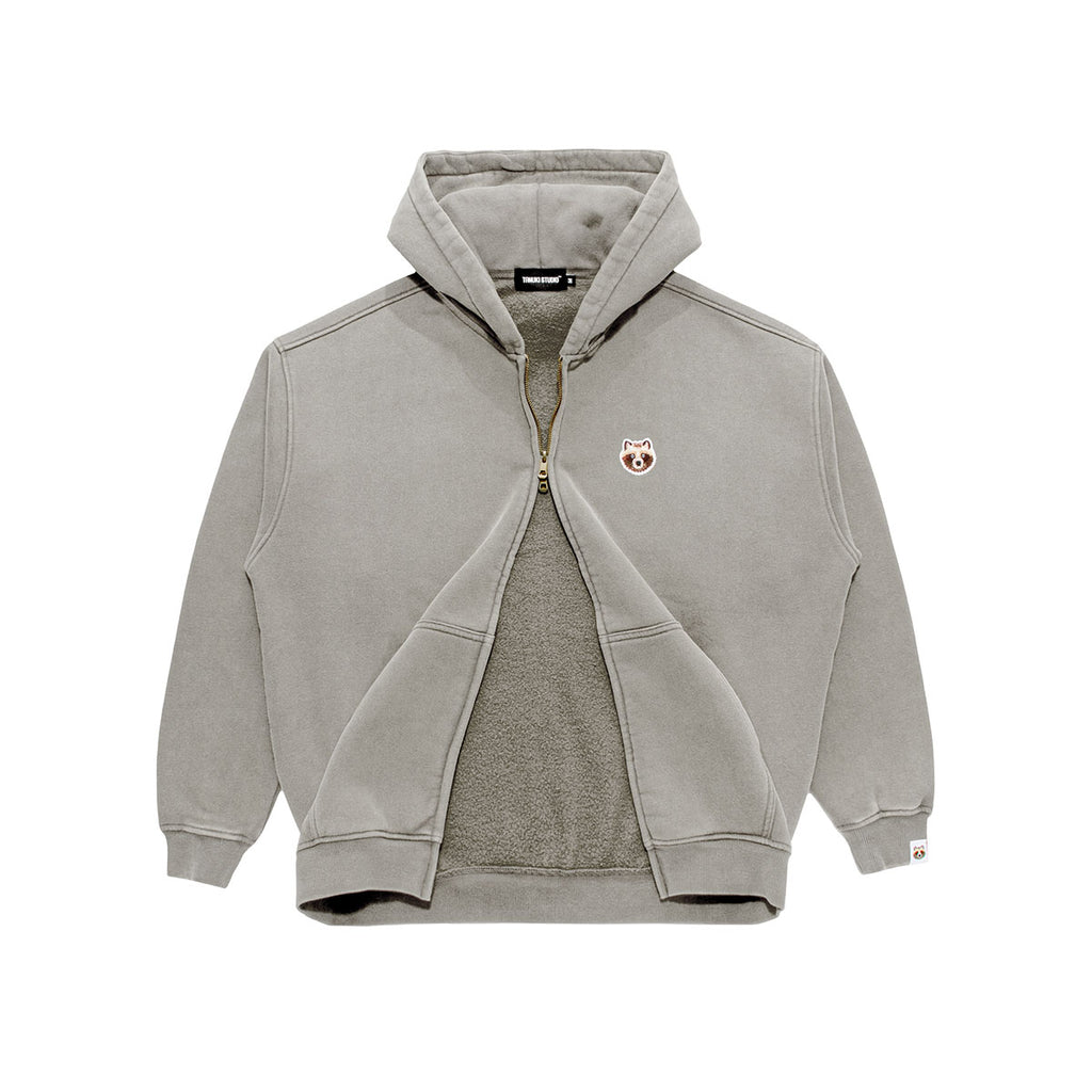 裏起毛のフワッとした素材感のスウェット生地にビンテージ加工を加えたオーバーサイズのジップアップフーディーです。